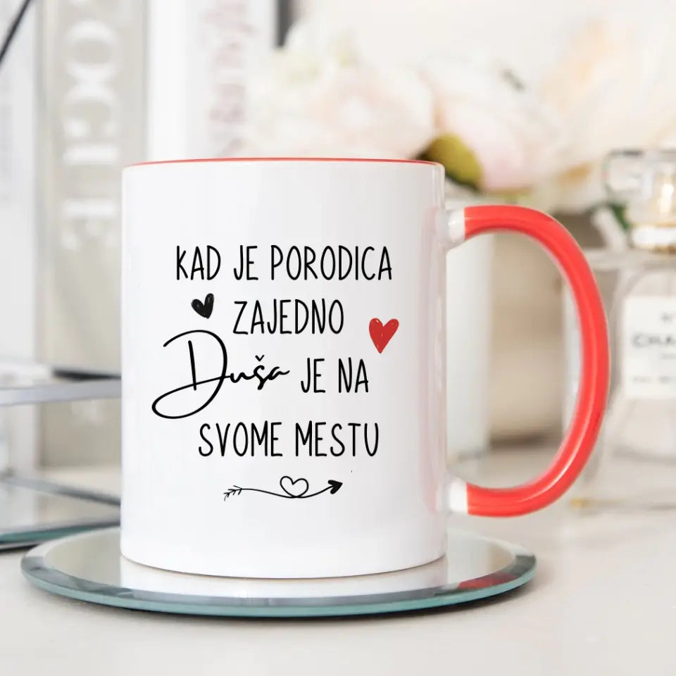 Štampa ide na jednu šolju a štampa se obostrano, jedna strana slika a druga strana text posveta.