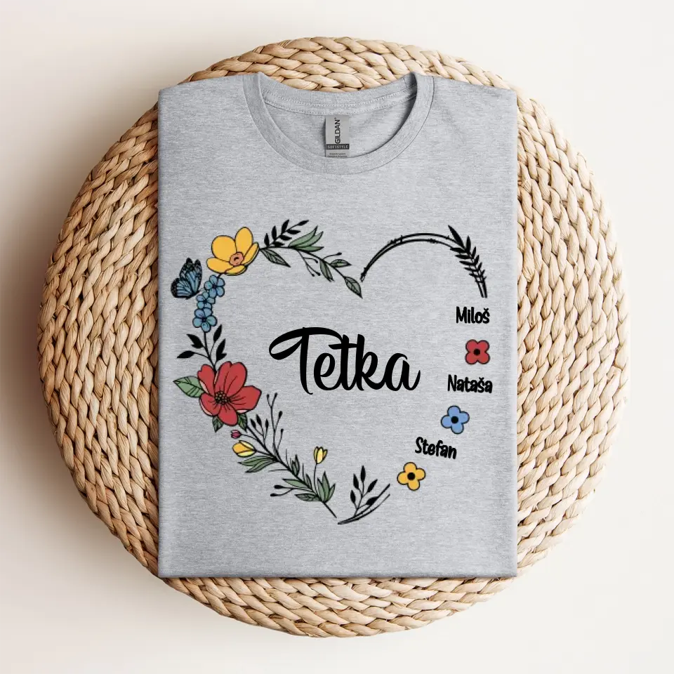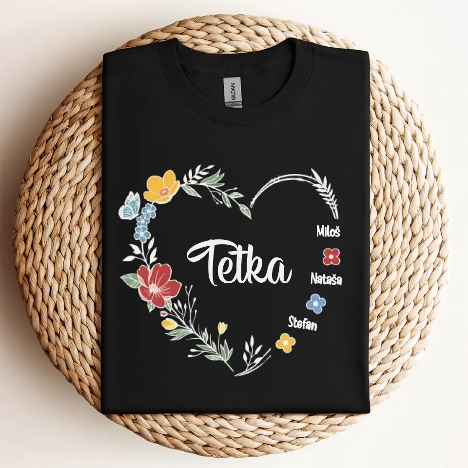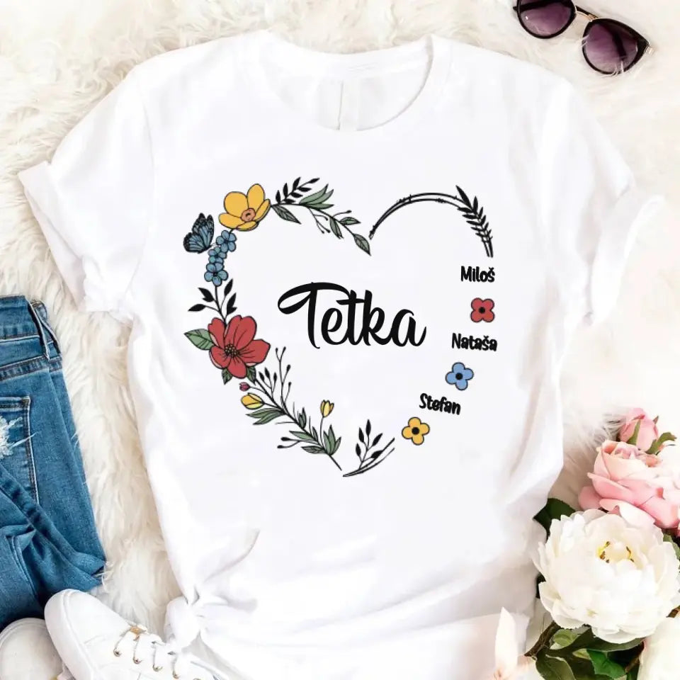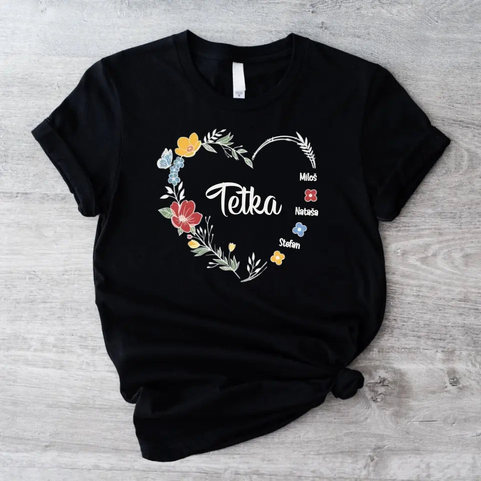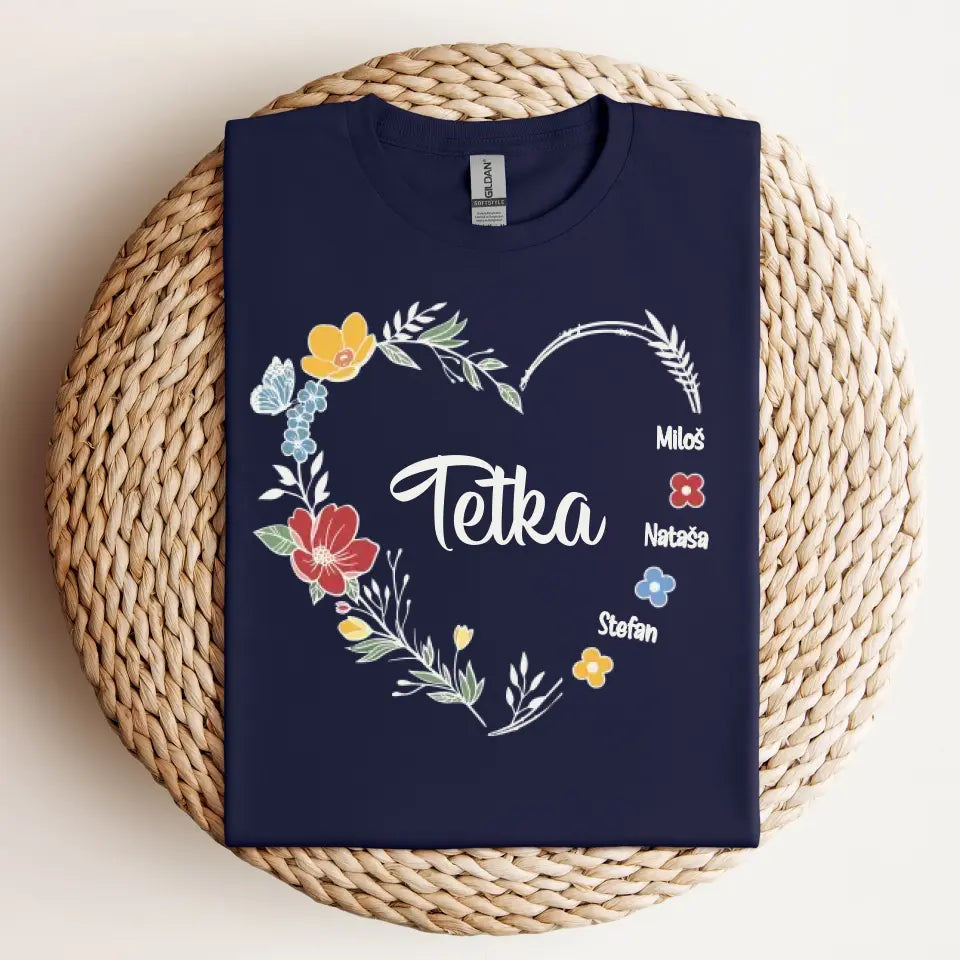 Srce od cveća sa imenima - Majica za Tetku